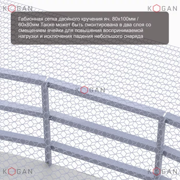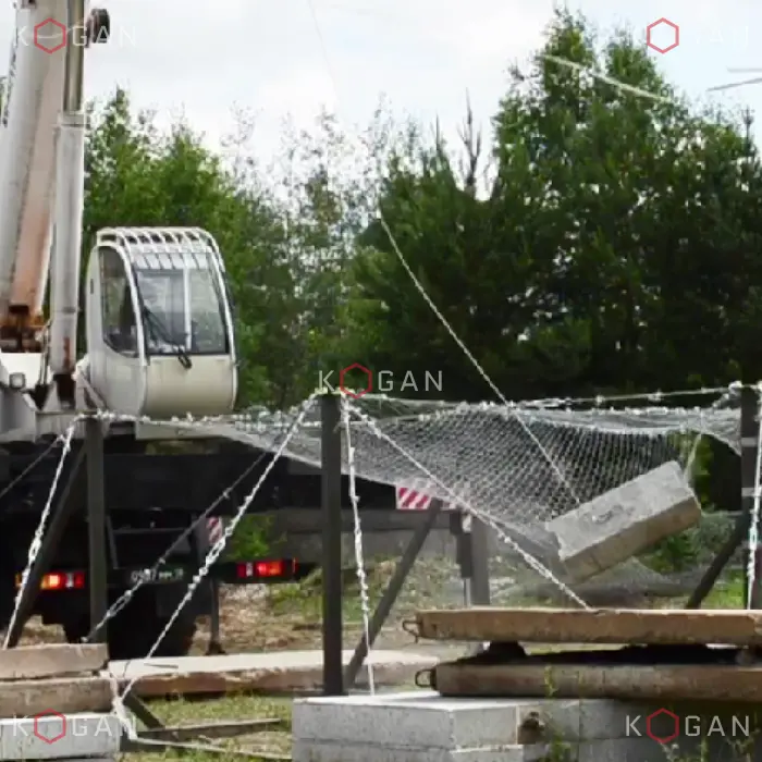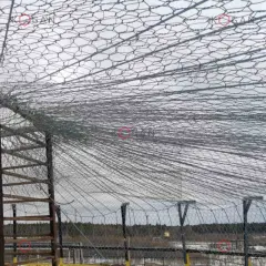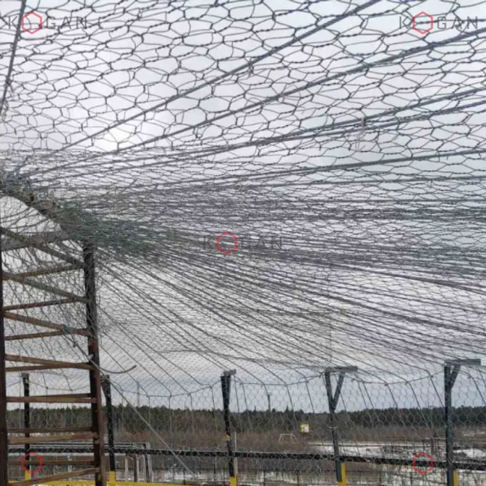 Для данных задач в качестве высокопрочной защитной сетки может быть использована габионная сетка двойного кручения шестиугольной ячейкой (С80, С60) ТУ 25.93.13-001-52757089-2018 / ГОСТ Р 51285-99 и усиленная армированная тросами сетка серии "ЗГК-ПАНЦИРЬ" ТУ 25.93.13-001-52757089-2018.