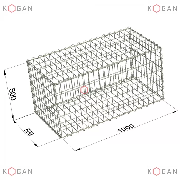 Габаритные размеры изделия составляют 1,0х0,5х0,5м с ячейками сетки 50x100. Сварная сетка изготовлена из проволоки диаметром 3.8 мм с цинковым покрытием (Ц), нанесенным методом горячего оцинкования, обеспечивающим превосходную защиту от коррозии и многолетний срок службы.