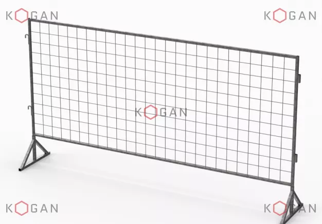 Мобильные передвижные временные ограждения применяются в качестве барьеров для ограждения строительных площадок, зон аварийно-восстановительных и ремонтных работ при ремонте дорог, инженерных сетей и других задач. Секции фиксируются между собой с помощью зацепов и проушин расположенных по краям рамы.