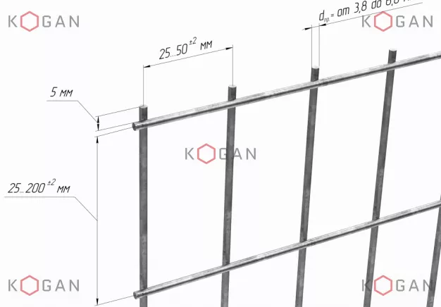 Возможности по размеру ячейки сетки: любая ячейка кратно 25мм (от 25х25мм до 50х200мм)